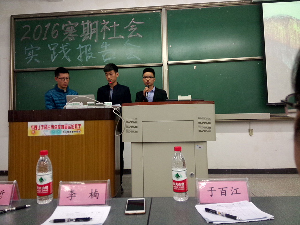 3月25日晚7:00,地科院于明辨樓C302召開了寒期社會實踐報告會。與會代表包括于百江老師、地科院學生會主席團成員、校實踐部部長等。