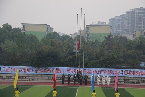 各方隊繞場一周,在體育場草坪中央有序集合。“向后轉”一聲令下,全體學生端莊站立,面向國旗,護衛隊的升旗手們喊著嘹亮的口號,踏著正步走向國旗桿。升旗儀式結束后,趙金洲校長向全體學生致開幕詞,倡導全校師生,天天健步走,日行一萬步,食動兩平衡,積極參與運動計時活動,同時表示繼續推進學校的體育俱樂部建設,健身發展三五計劃,四百公里健康體魄活動,師生共同努力,打造運動健康西南石大。隨后,計科院學生代表全體運動員莊嚴宣誓,裁判員代表莊嚴宣誓。最后,校黨委書記孫一平宣布:“西南石油大學第四十屆春季田徑運動會正式開幕!”