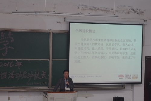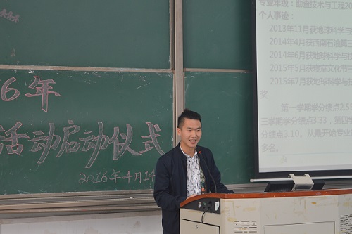 4月14日下午,地科院2016年學風建設年活動啟動儀式在明辨樓C205隆重舉行。地科院黨委副書記范起東,團委書記于百江,團委副書記兼15級輔導員文雪及各年級輔導員出席啟動儀式,各年級學生干部、學生會、研會成員參與本次活動。