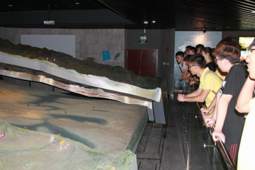 實踐隊成員觀看展示鄂爾多斯盆地地質構造發展的電動模型