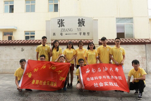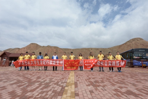 在丹霞地質(zhì)公園中,實(shí)踐隊(duì)與同樣在進(jìn)行暑期社會(huì)實(shí)踐的來自河西學(xué)院的志愿者們相遇,隊(duì)員們互相交流,向志愿者們了解了許多關(guān)于丹霞景區(qū)的知識(shí),并合影留念。