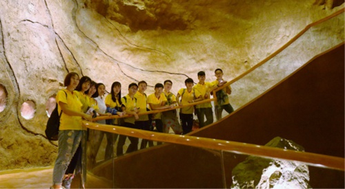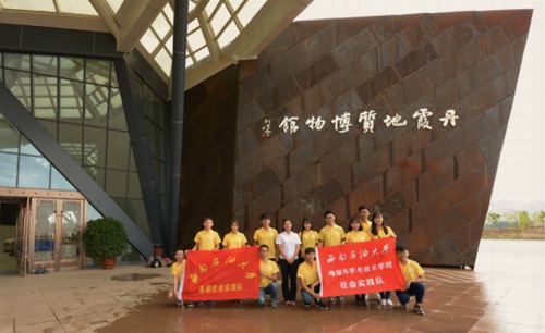 在抵達(dá)張掖市的下午,隊(duì)員們同張掖市的市團(tuán)委取得了聯(lián)系,張掖市的市團(tuán)委表示愿意提供給實(shí)踐隊(duì)前往張掖丹霞地貌地質(zhì)公園的通行證,并且隊(duì)員在張掖市的市政府合影留念,并且在此感謝張掖市市團(tuán)委的鼎力相助。21日,隊(duì)員們來到了丹霞地質(zhì)公園,首先隊(duì)員們?nèi)チ宋挥诘刭|(zhì)公園處不遠(yuǎn)的丹霞地質(zhì)博物館,博物館是近幾年才建立的。