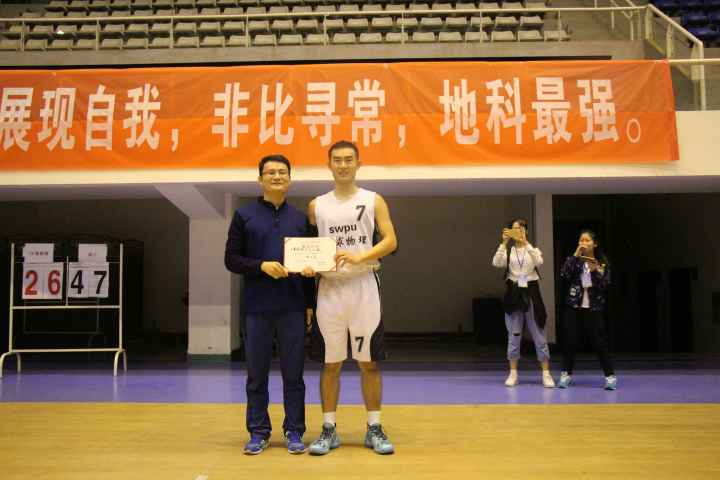 稍事休息后,舉行了頒獎儀式。由13級輔導員李明科老師進行頒獎,并鼓勵球員們繼續發揚體育精神,帶動全院的運動氛圍。在此次比賽中,球員們身姿矯健,斗志昂揚,積極團結,齊心協力,展示出了當代大學生積極進取,拼搏向上的體育精神,更展現了地科院的風采。(文/張自強 圖/陳功 羅國民)