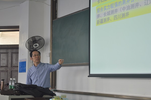 活動伊始,司馬立強教授向同學們介紹了整個石油行業的現狀,并向大家闡述了測井方向的重要性。司馬立強教授講到:測井方向是石油工業的眼睛,歡迎同學們加入到測井方向的大家庭中來。此外,司馬立強教授從測井地方系統、測井地面系統、測井井下儀器、測井資料采集、測井資料處理解釋、我校測井方向特色、測井方向應用前景、辦學條件、就業去向、課程設置等方面詳細介紹了測井方向。