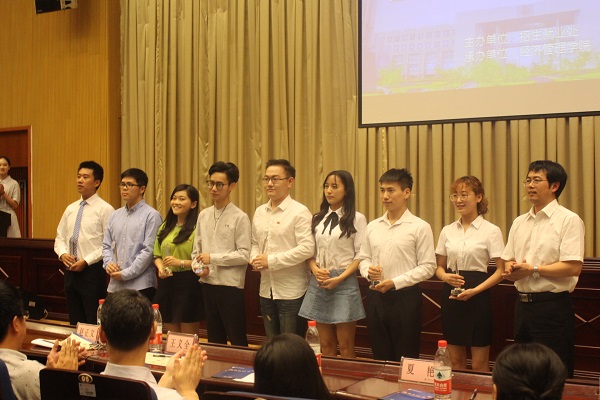 活動最后,趙正文為優秀畢業生代表頒獎并發表講話。他講到:希望同學們向幾位優秀畢業生學習,合理規劃時間,樹立遠大目標,為民族爭氣,為祖國加油。此外,地科院2016級的一位同學在報告會后也表示到:在聽了學長學姐的報告之后,警示了自身,更加堅定了自己的信念,一定會抓緊在大學的每分每秒,為自己博一個美好的未來。(圖/趙威 文/王穎琳、陳林捷)