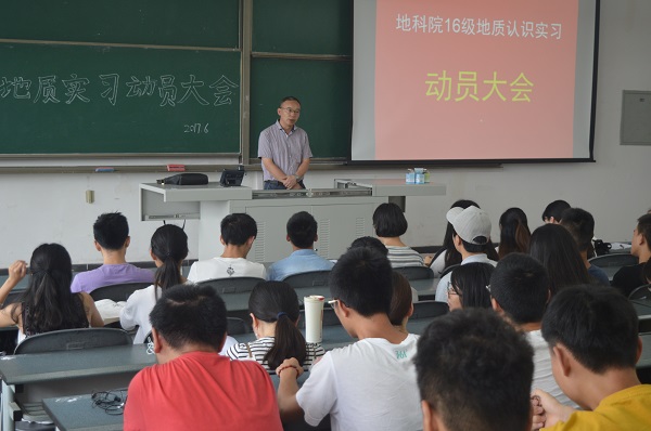 6月22日,地科院在明辨樓C203舉行2016級地質認識實習動員大會。地科院副院長譚秀成,實習帶隊老師代表范存輝、楊西燕,輔導員于百江及2016級全體參與此次實習的學生參加此次動員大會。