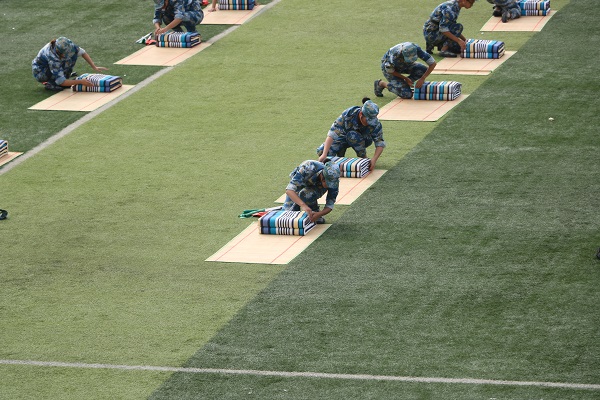 剛勁有力的棍術;整齊快速的內務整理;剛柔并濟的匕首操,矯健迅猛的擒敵術,匍匐多變的持槍戰術表演,驚心動魄的解救人質實戰演練以及青春洋溢的啦啦操,7個表演方隊的精彩表演掀起了全場一波接一波的高潮。同學們在表演之余,拼湊出了“石大、I、U”和心形等字樣,表達了自己對學校的熱愛之情。這次軍訓匯演不僅是展示他們的軍訓成果,更是他們初來石大送給學校的一份禮物。