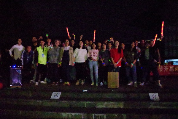 活動(dòng)一開始,2017級新生給大家?guī)砬宥鷲傂牡母枨硌荩橹瑢W(xué)們的吉他彈唱,熒光棒閃爍,現(xiàn)場氣氛嗨起來。隨后,院黨委副書記范起東為本次活動(dòng)致辭并宣布2017級新生心理健康節(jié)開幕,他希望同學(xué)們意識到運(yùn)動(dòng)對身體的重要性,“心希望,新夜跑”不僅是一次跑步活動(dòng),也是增進(jìn)大家心與心交流的一次集體活動(dòng)。接著,地科院藝術(shù)團(tuán)的一首《翅膀》讓同學(xué)們隨著音樂的節(jié)拍揮舞手中的熒光棒,與臺上表演的同學(xué)一起歌唱;飛云堂協(xié)會(huì)的《熒光雙節(jié)棍》表演,一招一式,氣勢非凡;秘書處全體同學(xué)為大家?guī)硪皇住侗寂堋罚半S風(fēng)奔跑自由是力量,追逐雷和閃電的力量”,伴著激昂的歌聲,各方隊(duì)依次有序出發(fā)。在跑步的過程中,他們口號響亮,氣勢如虹,在繞校小半圈的距離后,大家紛紛在起點(diǎn)合影留念,為跑步健身發(fā)出自己的宣言。
