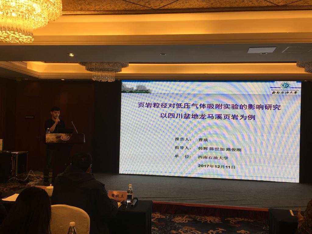 我院碩士研究生曹琰、李勇參加會議并作《頁巖粒徑對低壓氣體吸附實驗的影響研究:以四川盆地龍馬溪頁巖為例》、《特低孔低滲致密儲層油氣運聚動力研究——以川中大安寨段致密油為例》的報告。報告引起了同行的廣泛關注和熱烈討論。