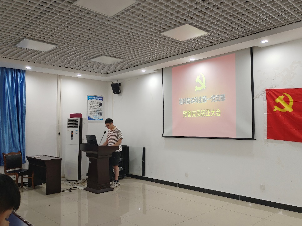 會議嚴格按照黨組織所規定的預備黨員轉正及預備黨員接收的程序進行。會議伊始,全體起立奏唱國歌,隨后由支部書記介紹本次會議議程,點名并通報黨員與會情況,宣布到會人數符合黨支部預備黨員轉正和黨支部吸收預備黨員要求。