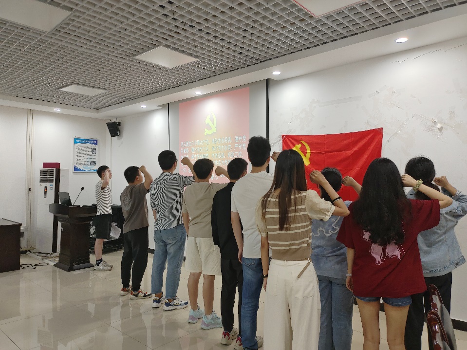 緊接著大會進行預備黨員接收事項。首先由發展對象向黨組織匯報自己對黨的認識、陳述入黨動機、自身表現、主要優缺點及需向黨組織說明的有關問題,并由入黨介紹人分別介紹申請人在培養考察期間的表現,提出介紹意見。隨后申請人回避,由正式黨員采用無記名投票的方式投票表決,一致同意十二位同志的轉正申請,并由支部書記宣讀決議。在支部書記曾偉同志的帶領下,十二位同志面對黨旗,鄭重宣誓,告誡每一位預備黨員不忘初心,嚴格要求自己,不斷提升和堅定自己的思想信念。