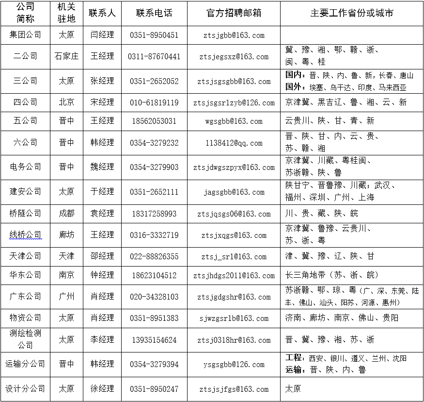 工程技術崗:土木工程、橋梁工程、鐵道工程、城市地下空間工程、道路橋梁與渡河工程、道路與鐵道工程、工程力學、給排水科學與工程、水利水電工程、建筑環境與能源應用工程、建筑學、建筑與土木工程、采礦工程、地質工程、測繪工程、地理信息科學、勘查技術與工程等