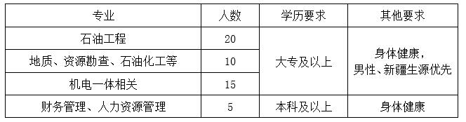 根據2022年公司人才儲備需求,現面向各大院校招聘石油工程、資源勘查、機電一體化等專業人才50名,具體需求見下表: