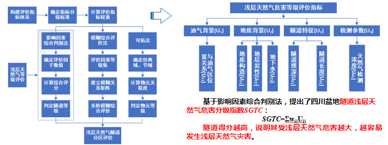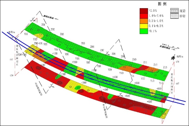 針對含油氣盆地淺層天然氣運移規律、致災機理不明,淺層天然氣隧道施工風險大,泥巖地層盾構機漂移、餅化等關鍵難題,揭示了淺層天然氣生成機理、運移模式和賦存規律,首次提出了一種適用于評價含油氣盆地淺層天然氣對隧道危害程度的方法;提出基于TSP的隧道淺層天然氣綜合超前預報方法,構建了長距離地鐵隧道一體化安全風險管理信息平臺;基于流固耦合理論,提出了一種淺層天然氣抽排長距離地鐵隧道工程中淺層天然氣的防災理論與方法,研發了一套降低地層中淺層天然氣濃度的抽排設備;提出了盾構機超前鉆孔處理泥巖地層盾構機及管片大漂移的技術,解決了泥巖地層中盾構漂移量大糾偏難的技術問題;研發了城市軌道交通隧道近距離穿越建構筑物礦山法施工技術,提出礦山法近距離穿越建筑物的基于初期支護結構的樁基托換體系。