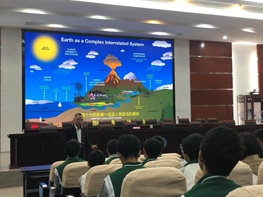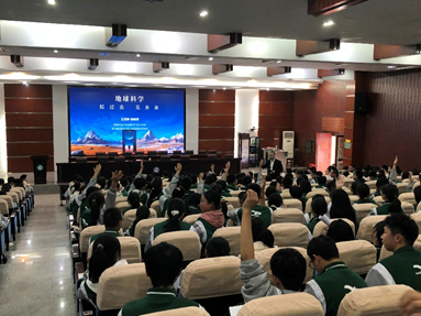 王浩錚以話題“地球對你意味著什么?”作為開場,講述了地球母親為我們的人類生產生活提供了各類資源與能源、同時也是目前整個太陽系唯一適宜人類居住的星球。從熱播電影《流浪地球》出發,與學生一起探討冰川時代、生物大滅絕等事件,引發了學生極大興趣。隨后王浩錚以地球科學為主線,介紹了傳統化石能源、新型清潔能源,并且引導學生要注意多學科交叉融合,講述了地球科學與新能源、新材料等學科的交叉融合研究。他指出,地球科學應用前景廣闊,亟待有志之士,簡要分享了地球科學在四川的應用,介紹了目前正在進行的全球首口地質條件最復雜、鉆井難度最高的萬米科探井——深地川科1井的情況。最后,王浩錚結合自己的科研工作以及地科院的部分大精實驗設備,闡述了通過對遠古巖石的測試分析,可以揭示早期地殼演化的奧秘,回眸地球演化歷史,展望地球未來趨勢。講座期間,王浩錚鼓勵學生積極回答問題和大膽提出自己的疑問,學生熱情高漲,紛紛舉手參與互動,講座氣氛特別熱烈,贏得了廣大師生的一致好評。與會學生表示,王浩錚老師講座生動有趣、干貨十足,對地球科學有了初步的了解,要學好數學、物理、化學等等,多學科交叉融合才能更好的學好地球科學,保護好地球母親。