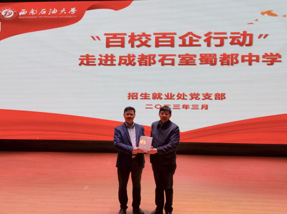 為進一步強化與中學間的交流互動,更好地服務中學師生,吸引更多優質生源,3月28日下午,地球科學與技術學院副院長范翔宇、西南石油大學招生就業處副處長肖虎等一行赴成都石室蜀都中學開展能源安全科普講座。