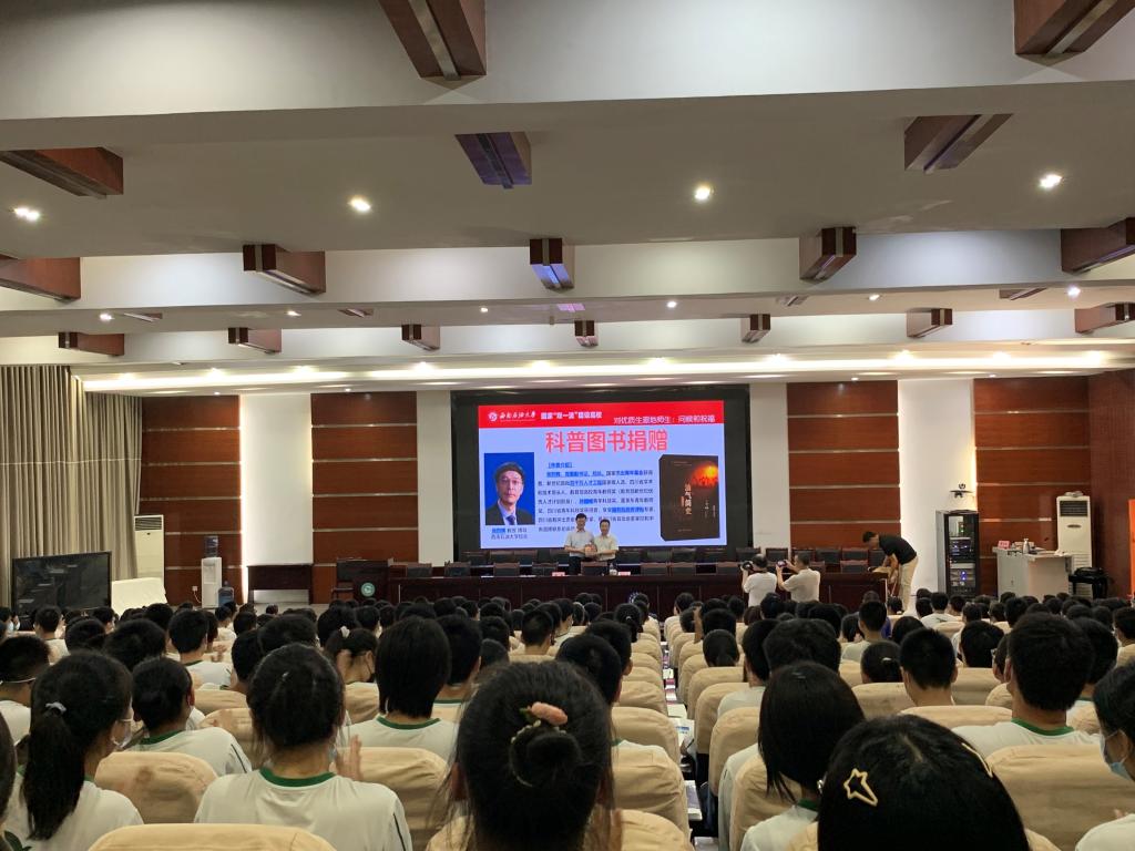 其間,范翔宇教授還向西充中學捐贈科普圖書,助力西充中學學子們更好地了解能源科學知識。范教授向在場師生介紹了西南石油大學作為“雙一流”高校在能源領域的人才培養優勢、學校相關招生政策和我院地學類相關學科專業的特色,鼓勵更多優秀學子報考西南石油大學,弘揚“為祖國加油,為民族爭氣”的大學精神,為國家富強、民族復興不懈奮斗。