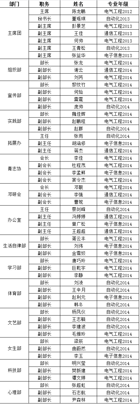第十六屆團委學生會學生干部名單