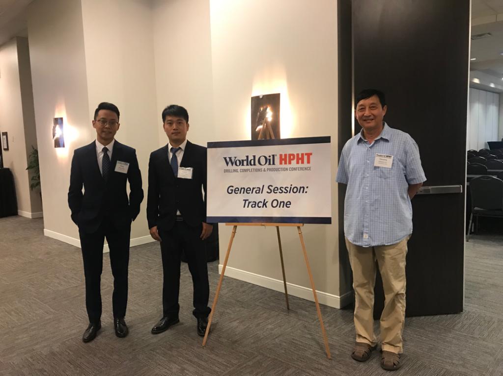 郭小陽(yáng)教授(右)和團(tuán)隊(duì)成員出席世界石油高溫高壓鉆完井與生產(chǎn)會(huì)議
