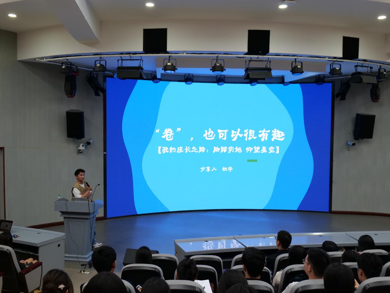 杜宇用輕松幽默的語言講述了自己的大學學習經歷,分享了難忘的點滴瞬間。他說,大學時光是人生中最寶貴的階段之一,大家應該有所規劃,不僅要認真學習專業知識,還要積極參與實踐活動,提升綜合素質能力。談及畢業后的就業經歷,他詳細介紹了自己的職場成長歷程,從走出待就業時期的迷茫,到勇敢抓住歪打正著的機會,在應對工作挑戰中持續學習、積累經驗。最后他希望同學們要充分發揮主觀能動性,挖掘自己的潛力和優勢,善于思考和創新,避免機械的重復;要學會忍耐、懂得等待,堅持不懈、潛心磨礪,總會有發光之時。