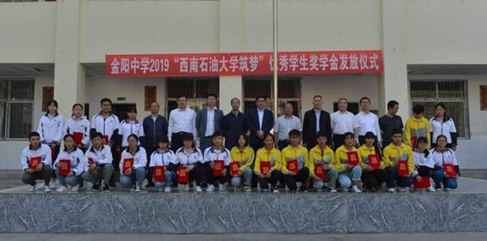 下午4點(diǎn)過,趙金洲與郭世一參加了在金陽(yáng)中學(xué)舉行的2019“西南石油大學(xué)筑夢(mèng)”優(yōu)秀學(xué)生獎(jiǎng)學(xué)金發(fā)放儀式,總計(jì)為22名學(xué)生發(fā)放獎(jiǎng)學(xué)金5萬元。趙金洲勉勵(lì)同學(xué)們刻苦學(xué)習(xí),考上大學(xué),學(xué)成之后回來建設(shè)家鄉(xiāng)。