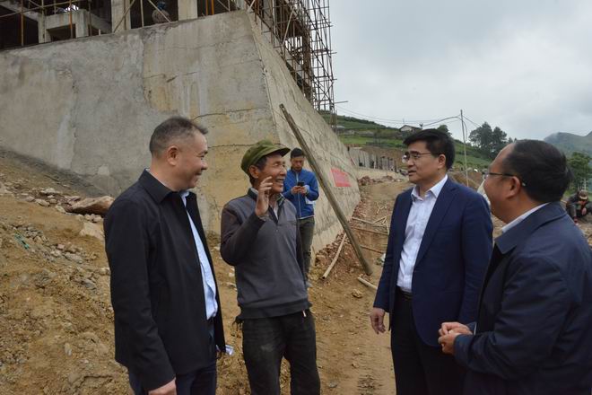 種植基地上方不遠(yuǎn)處,是易地扶貧搬遷的集中安置點(diǎn)建設(shè)工地,這是21號(hào)上午的最后一個(gè)考察點(diǎn)。看到一排排由鋼筋混凝土建造的新房正拔地而起,想到不久以后村民將搬進(jìn)具有彝族風(fēng)格的新家,趙金洲深有感觸地說:“這比土坯房舒服多了。”村老支書約次格日看到客人到來,停了手中的活走下工地,趙金洲上前與他握手寒暄,趙金洲說:“你們搬進(jìn)新居后,我還要來看看。” 約次格日高興地說:“歡迎歡迎,請(qǐng)一定來我家做客。”