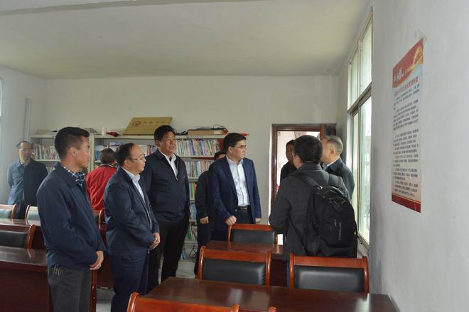 在村黨支部所在地,文武向趙金洲一行匯報(bào)了新寨子村的基本情況和扶貧工作。新寨子村現(xiàn)有170戶745人,建檔立卡貧困戶104戶522人。開展精準(zhǔn)扶貧以來,新寨子村的基層黨建、產(chǎn)業(yè)發(fā)展、基礎(chǔ)教育、移風(fēng)易俗、基礎(chǔ)設(shè)施建設(shè)等均取得比較突出的成效,村民內(nèi)生動(dòng)力增強(qiáng),產(chǎn)業(yè)逐步壯大,村貌煥然一新。聽取匯報(bào)后,一行人又考察了村支部和村委會(huì)辦公室、農(nóng)民夜校和圖書室。