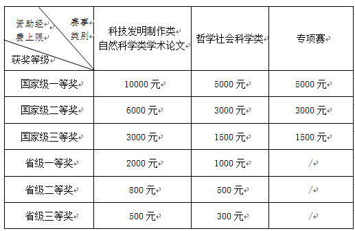 3、本次“挑戰杯”校內選拔賽參賽作品的立項資助以成果為導向,資助獲得省級及以上獎項的優秀作品。按照作品的經費預算(經費預算表見附件4),在資助經費上限和學校財務報銷規定的范圍內,資助經費實行實報實銷原則。不同類別、不同獎項的資助經費上限見表2。