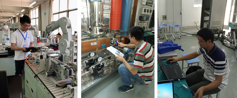 為提高實驗室教師的實驗實踐能力,提升本科實踐教學水平,2019年第五屆全國高等院校工程應用技術教師大賽將于今年11月中旬在杭州舉行。為了提升參賽教師應用技術水平,保證此次競賽活動能取得良好成績,電氣信息學院派出靳濤等5名教師于9月10日-24日參加全國高等院校工程應用技術教師大賽培訓活動。參訓教師充分利用僅有的4天培訓時間,認真學習競賽流程、熟悉競賽要求、掌握競賽所需設備操作技巧。此次競賽我院教師將參加“電子技術創新設計與應用”、“可編程序控制系統設計及應用”、“過程裝備及自動化技術”、“智能制造生產線信息集成與控制”、“工業網絡集成控制技術”5個組別的比賽。