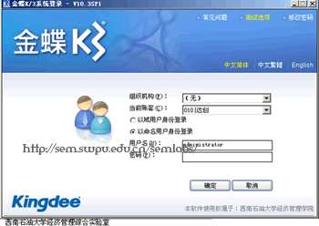包含財(cái)務(wù)管理、生產(chǎn)制造、人力資源、供應(yīng)鏈管理等四大模塊,人力資源模塊通過WEB方式訪問。 上課賬套信息請(qǐng)直接和任課教師聯(lián)系,開放實(shí)驗(yàn)請(qǐng)和直接和實(shí)驗(yàn)室聯(lián)系。 |