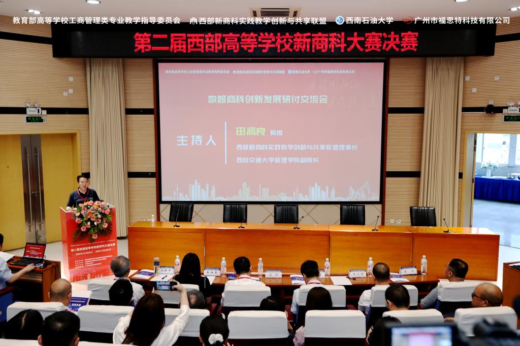 6月1日,由西南石油大學承辦的第二屆西部高等學校新商科大賽決賽在我校舉行。來自西安交通大學、電子科技大學、西北農林科技大學、西北大學、西南石油大學等高校的領導和專家以及西部新商科實踐教學創新與共享聯盟和廣州市福思特科技有限公司的代表受邀出席此次大賽。