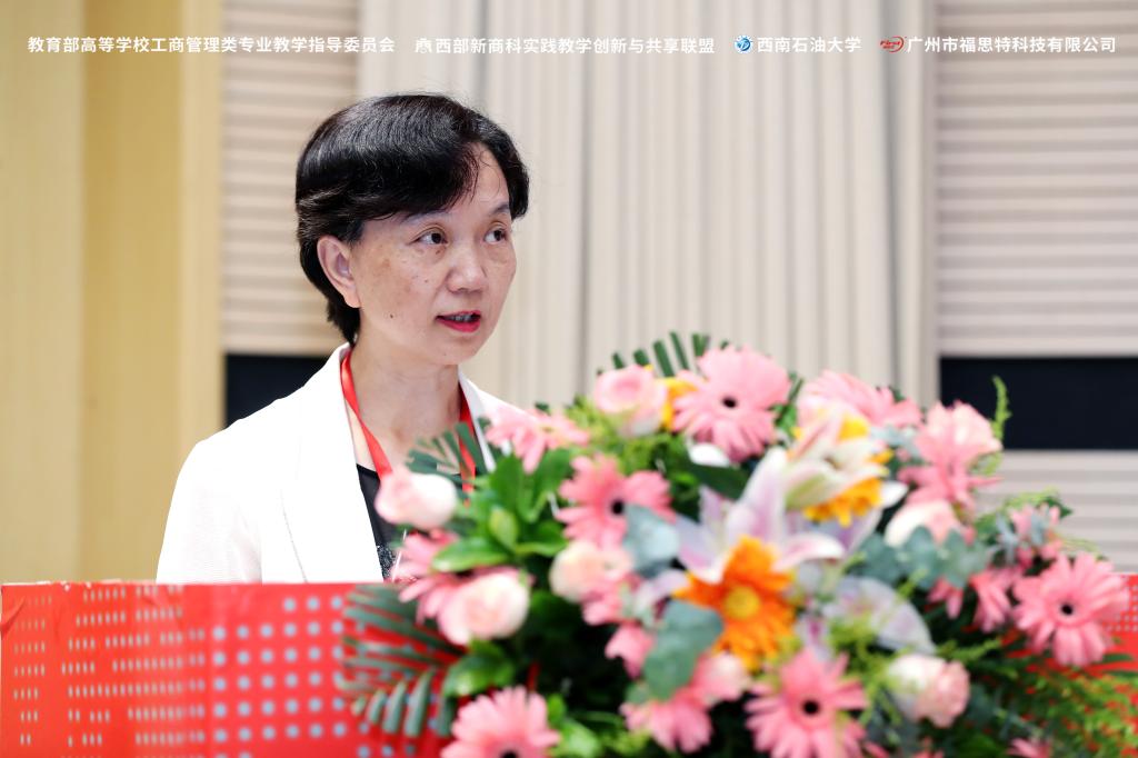 西南石油大學黨委常委、副校長劉向君代表承辦單位致歡迎辭。她向出席此次大賽的領導、嘉賓和參賽師生表示誠摯歡迎,向負責籌備大賽的工作人員表示衷心感謝。劉向君指出,新商科是商科教育主動服務于新經濟的戰略性調整,是積極回應數字經濟與管理變革的戰略性行為,也是推動我國由商科教育大國向商科教育強國轉變的變革性工程。