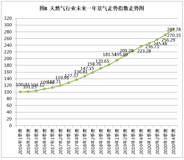 四、天然氣行業未來一年景氣走勢指數分析