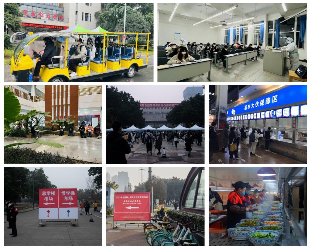 為保障考試順利進行,學校緊緊圍繞“二十條”“新十條”要求,在省考試院、成都市新都區、南充市順慶區相關部門支持下,學校研究生招生工作領導小組周密部署,各部門協調聯動,高效統籌疫情防控和考試組織工作。校黨委書記陳永燦,黨委副書記、校長張烈輝一線把關、親自督戰,考前組織檢查,考中巡查監督,全力守住疫情防控、考試安全保密“雙紅線”。