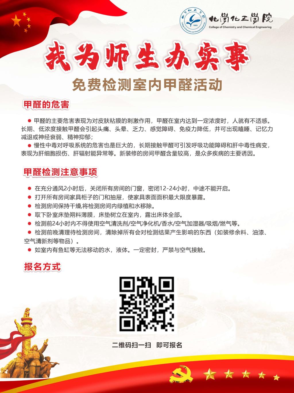 我為師生辦實事:化工院開展免費甲醛檢測活動2022-03-25 作者:馬培培 編輯:闞文華 審核:陳剛 瀏覽:[]