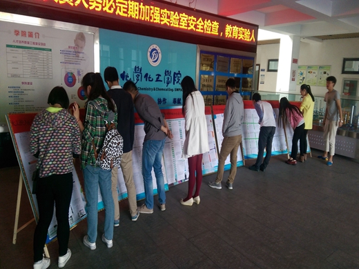 “入黨積極分子、預備黨員、正式黨員公開亮身份、亮承諾,讓廣大同學增強責任感和使命感,從現在做起,從自身做起,隨時接受黨組織的檢查和監督”是化工院廣大學生在“亮身份、亮承諾、做表率”活動中表達的共同心聲。 4月14日,化工院在明德樓A區大廳展示了入黨積極分子、預備黨員、正式黨員撰寫的化工院學生黨旗領航計劃之“三階段、三目標、三量化、三承諾”考核管理承諾書。承諾書中既有定量的學習成績要求、志愿服務時長,又有定性的政治理論學習、個人綜合能力提升,融合自己的日常學習、生活、行為規范,從而更好地接受廣大同學的監督,做到做好的自己。 活動中,廣大入黨積極分子、預備黨員、正式黨員注重將提高個人素質與發揮模范帶頭作用并重,向廣大學生“亮黨員身份、亮行動準則、亮行為示范”,承諾把自己塑造成政治理論學習的表率、學習專業知識的表率、志愿服務同學的表率。 “亮明了身份,想不做好都不行!”應用化學2011級學生預備黨員萬昕藝說道 “每名學生黨員都是一面鏡子,每天進出門,都要時刻提醒注意自己的一言一行,作為一名畢業生黨員,更應該嚴格要求自己,用行動為學弟學妹們樹立榜樣,為自己的大學生涯畫上圓滿的句號”