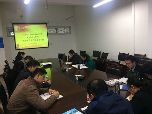 | 化工院黨委進行第九次中心組學習2016-11-09  作者:范逸軒  編輯:范逸軒  審核:  瀏覽:[]  11月8日下午,化學化工學院黨委在明德樓A523進行了第九次中心組學習,本次學習為黨的十八屆六中全會專題。學習由黨委書記陳馥主持。學院領導班子成員、黨支部書記、科級干部以及后備干部參加了學習。 陳馥書記首先帶領與會人員學習了《中國共產黨第十八屆中央委員會第六次全體會議公報》。陳馥書記指出:黨的十八屆六中全會是新時期我黨發展中的里程碑,標志著我們黨堅定不移推進全面從嚴治黨的決心和歷史擔當,也是實現中華民族偉大復興中國夢的有力保障。陳馥書記強調:當前,全院的首要政治任務就是學習貫徹好六中全會精神,統一思想,緊密團結在以習近平同志為核心的黨中央周圍,堅定不移的執行黨中央統一領導。與會同志還一起學習了《新形勢下黨內政治生活的若干準則》和習近平《關于新形勢下黨內政治生活的若干準則》和《中國共產黨黨內監督條例》的起草說明。 最后,大家一起分析和剖析了“兩學一做”學習教育三項整改“回頭看”中存在的問題和不足。明確了今后一段時間內“兩學一做”的努力方向。 上一條:化工院組織教職工黨員參觀慶祝紅軍長征勝利80周年圖片展 下一條:化工院開展新學期第一次中心組學習 【關閉】 |