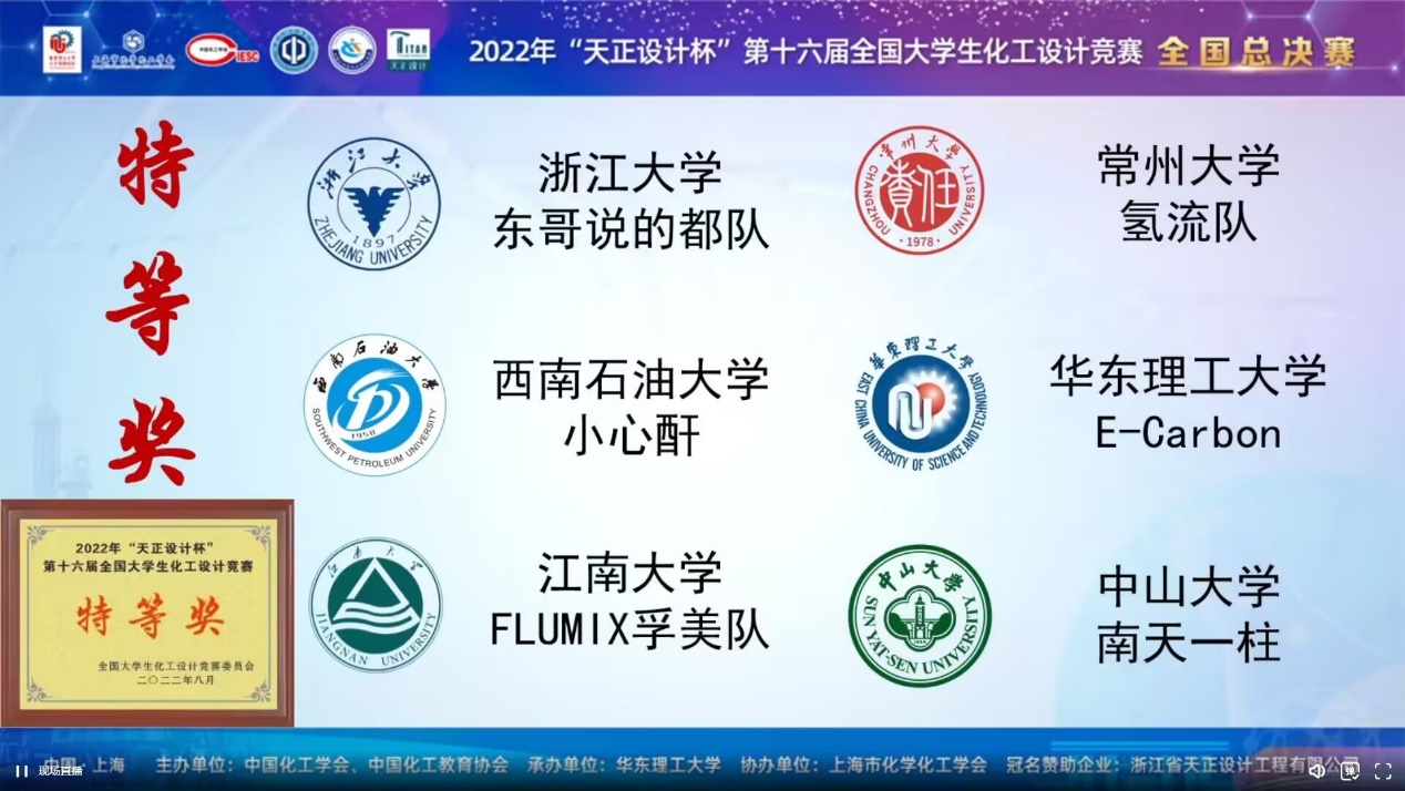 我院學生在全國大學生化工設計競賽中首奪全國總決賽特等獎2022-08-25  作者:楊文貢、楊磊  編輯:楊磊  審核:陳剛  瀏覽:[]