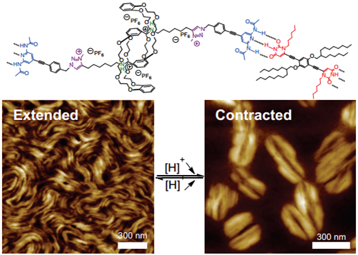 多年來,利用分子的微觀運動從宏觀尺度(macroscopic)合成仿生肌肉材料一直是科學實驗難題。目前最好的伸縮實驗結果約為20nm,但合成的聚合物材料溶解性差,且此伸縮行為不可逆。在此前的研究中,我們將單個“分子機器”引入超分子聚合物,利用金屬-配體等超分子作用,首次合成了通過pH控制的線性人造肌肉,伸縮長度達到10 μm數量級,與真實的人體肌節運動尺度1.0 μm相當。該成果曾被作為首頁封面文章發表(Angew. Chem. Int. Ed. 2012, 51, 12504-12508),受到同行專家J. F. Stoddart、J. P. Sauvage等的肯定,并被多家期刊和機構關注報道(Nature Nano., 2013, 8, 9-10.; 法國國家與科學技術研究中心(CNRS); 英國< 上一條:化工“星”播客 ——科研從自信開始 下一條:我院化學工程與工藝專業接受工程教育認證專家現場考查 【關閉】 |