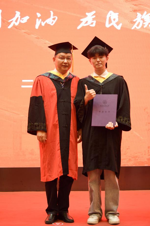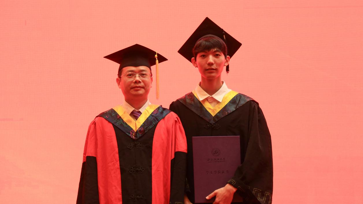 六月驪歌起,共赴新征程。6月20日,化學(xué)化工學(xué)院2024屆本科畢業(yè)生學(xué)位授予儀式于學(xué)校圖書館學(xué)術(shù)報(bào)告廳隆重舉行,學(xué)院黨委書記王兵、院長(zhǎng)段明、副院長(zhǎng)王林元、副院長(zhǎng)唐鋆磊、教授委員會(huì)代表、畢業(yè)年級(jí)輔導(dǎo)員、2024屆全體本科畢業(yè)生及部分學(xué)生家長(zhǎng)參加儀式,儀式由學(xué)院黨委副書記戴志主持。 戴志首先對(duì)學(xué)院2024屆全體畢業(yè)生順利完成學(xué)業(yè)、即將開(kāi)啟人生新篇章表示熱烈祝賀,寄語(yǔ)同學(xué)們?cè)诮窈蟮纳钪杏掠陂_(kāi)新局、敢于闖新路,在新的土地上播種希望、續(xù)寫輝煌,并表示學(xué)院永遠(yuǎn)是同學(xué)們堅(jiān)強(qiáng)的后盾和溫暖的家,歡迎大家?;啬感?纯?。 在學(xué)位授予環(huán)節(jié),導(dǎo)師代表王兵、段明、王林元、唐鋆磊、陳永東、肖國(guó)清、周家斌為全體畢業(yè)生撥穗正冠,授予學(xué)位并合影留念。授位過(guò)程中,導(dǎo)師代表與每一位畢業(yè)生握手并送上祝福,傳遞著師長(zhǎng)的殷切期望,為同學(xué)們?cè)诨瘜W(xué)化工學(xué)院四年的旅程畫上完美句號(hào)。 思源致遠(yuǎn),不忘初心。衷心祝愿化學(xué)化工學(xué)院2024屆畢業(yè)生帶著這份祝福與期望,逐夢(mèng)赴山海,揚(yáng)帆再起航,在未來(lái)的旅途中成就精彩人生!