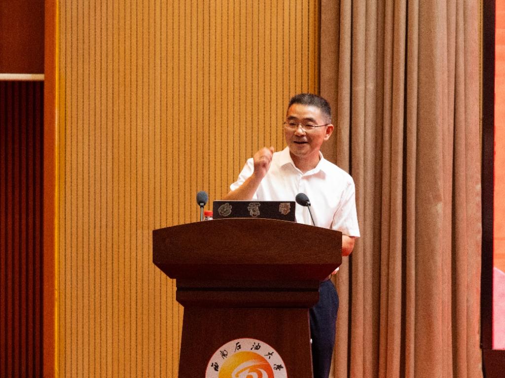 9月9日下午,化工院2024級新生開學典禮在圖書館學術報告廳隆重舉行。四百余名本科新生滿懷希望與熱忱,開啟人生新征程。學院領導班子、各教研室主任、專業教師代表,校友代表,新生輔導員和2024級全體本科生出席了本次典禮,典禮由院黨委副書記、紀委書記戴志主持。 典禮在莊嚴而肅穆的氛圍中拉開帷幕。首先,全體師生起立,共同奏唱中華人民共和國國歌,激昂的旋律回蕩在會議廳內,激發了每一位在場師生的愛國情懷和榮譽感。 校黨委常委、宣傳部部長、學院黨委書記張敏在致辭對全體新生加入化工院這個溫暖的大家庭表示熱烈歡迎。對學院的發展歷史和現狀進行了簡要介紹,并寄語新生,在新的人生起點上要做有格局的大學生,樹立高遠志向、錘煉堅毅品格、強化能力塑造,勇做走在時代前列的奮進者、開拓者、奉獻者。 教師代表余亞蘭老師上臺發言,向新生們分享了學習心得與人生感悟,她表示:在學習過程中要保持專注、不畏困難、多交流、多花時間,鼓勵大家珍惜大學時光,勇于探索未知,不斷追求卓越。 校友代表舒暢就如何成為更好的自己進行發言,勉勵學弟學妹們在大學追求卓越,創造輝煌,并向學院領導老師提前送出教師節問候,感恩恩師在往年的諄諄教誨。 在校生化學工程與工藝2021級鄧燦同學作為在校生本科生代表,他以其豐富的實踐經驗和幽默風趣的講述方式,為新生們帶來了深刻的思想啟迪。勉勵學弟學妹們珍惜時間,抓住機遇,奮發有為。 新生代表應用化學專業2024級龐靖澤發言充滿朝氣與活力,表達了對大學生活的憧憬與期待,承諾以飽滿的熱情和堅定的信念投入到學習中,為學院的發展和自己的未來努力奮斗。 學院院長段明為新生們上“院長第一課”。從為什么讀大學、我們的大學、怎樣讀大學、大學的注意事項等方面展開了生動介紹,鼓勵同學們樹立正確的世界觀、人生觀和價值觀,珍惜大學時光,努力學習專業知識,積極參與社會實踐和志愿服務活動,不斷提升自己的綜合素質和能力水平。