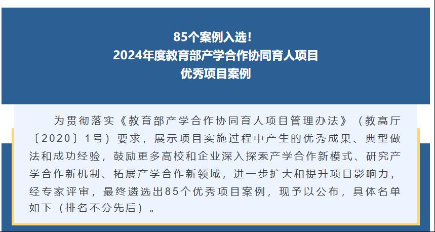 2024年11月16日,第十一屆教育部產學合作協同育人項目對接會在北京召開,公布了2024年度教育部產學合作協同育人項目優秀項目案例,全國共遴選85個優秀項目案例,我院王豪教授主持的“校企共建具有京博特色和石油精神的一流石油化工人才實踐基地”項目成功入選。本次公布的優秀項目案例是從2024年6月啟動的教育部產學合作協同育人項目“十周年系列典型案例”征集活動中,由個人或單位申報,經專家組評選,從歷年眾多項目中優選獲得。教育部產學合作協同育人項目優秀項目案例旨在展示項目實施過程中產生的優秀成果、典型做法和成功經驗,鼓勵更多高校和企業深入探索產學合作新模式、研究產學合作新機制、拓展產學合作新領域,進一步擴大和提升項目影響力。