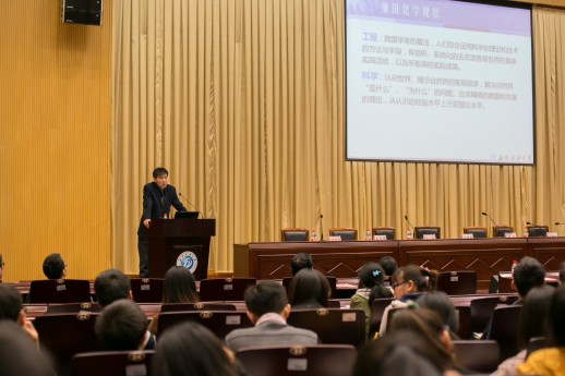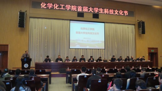 學院院長葉仲斌分享了本屆科技文化節(jié)的理念與內(nèi)涵。他介紹到,自然科學的文化特質(zhì)就是追求理性,講究邏輯,這也就決定了作為擁有五大專業(yè)(化學、化工、應化、環(huán)境,安全),二個一級學科(化學工程與技術,環(huán)境工程)的理工科學院——化工院的“精、氣,神”。他表示,化工院科技文化節(jié)就是在這一理念下應運而生的開放性平臺,他希望同學們能夠在這個平臺上綜合學科知識,提升創(chuàng)新意識,培養(yǎng)具有化工院特色的“精、氣、神”。