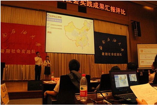 學院代表隊由化學工程與工藝2012級王夢露、應用化學2014級欒逸飛組成。學院答辯以一段精彩的視頻開場。視頻展示出了學院從暑期社會實踐的定位、策劃到動員、實踐再到收獲等歷程。今年暑期學院共派出58支團隊,共計八百余人開展了多姿多彩的社會實踐活動。學院別出心裁地用紅、橙、藍、綠、紫五種顏色來代表石油化工企業行,投身環保我先行,關注民生走基層,暑期實踐我成長,爭當出彩化工人這五個方面進行答辯。學院五位實踐代表身穿手繪T恤向評委老師發放以學院學生實踐為原型的手繪明信片,上面記錄著同學們實踐的點滴與收獲。學院學生的實踐活動先后得到新浪網、人民網等國家級媒體報道12次,廣西電視臺、西昌電視臺等省市級媒體報道34次,取得了良好的社會反響。經過評委評審,化工院、經管院、石工院獲得一等獎,電信院和地科院獲二等獎,機電院、藝術院、土建院、外語院和法學院獲三等獎,計科院、材料院、體育學院、理學院獲優勝獎。