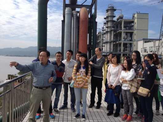 師生一行25人上午十點來到公司。在公司的新規(guī)劃廠區(qū)門口,行政副總經(jīng)理曾建文首先為師生們介紹了福華通達的發(fā)展歷史、現(xiàn)狀及未來發(fā)展目標。進入廠區(qū)后,羅經(jīng)理帶領(lǐng)學生參觀了公司拳頭產(chǎn)品草甘膦的生產(chǎn)流程、原料庫、成品庫和品控室,期間,師生們就企業(yè)管理、生產(chǎn)技術(shù)及品控措施與企業(yè)主管人員進行了充分交流。