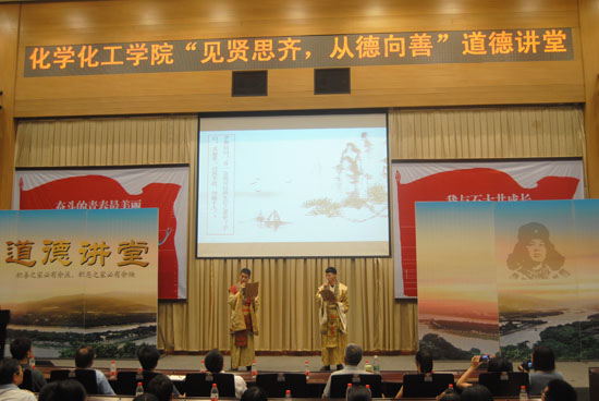 為貫徹、落實學校關于開展道德講堂活動的通知精神,大力弘揚“存好心,做好事,當好人,有好報”的價值取向,進一步增強師生員工的思想道德建設,積極踐行社會主義核心價值觀,6月17日下午16:30化工院在圖書館學術報告廳“見賢思齊,崇德向善” 道德講堂正式開講了,化工院全體黨政領導、教職工黨員、學生黨員代表參加了本次活動。活動由化工院黨委書記陳馥主持。