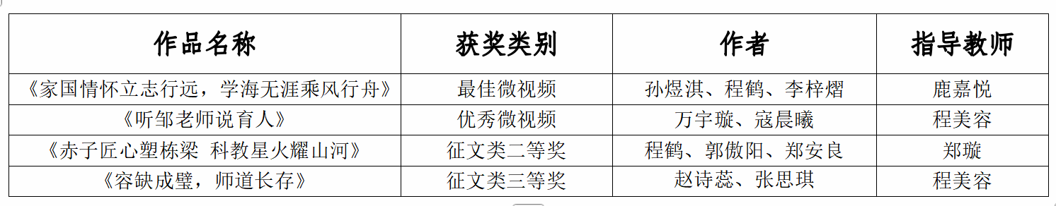 近日,學校關工委公布2025年“讀懂中國”活動評審結果,我院師生選送作品表現優異,共斬獲4項榮譽。其中包括最佳微視頻1項,優秀微視頻1項,征文類二等獎1項、三等獎1項。具體獲獎情況如下: