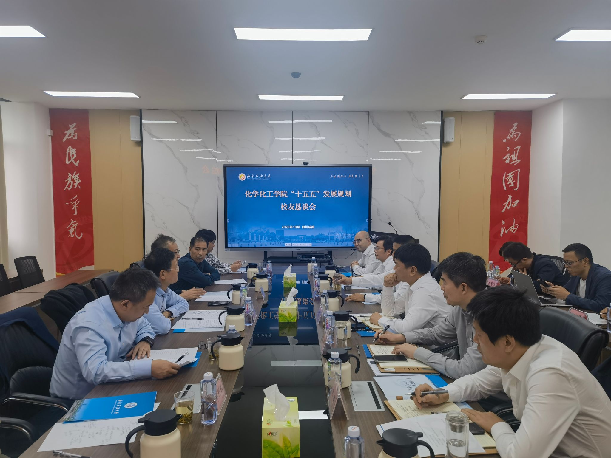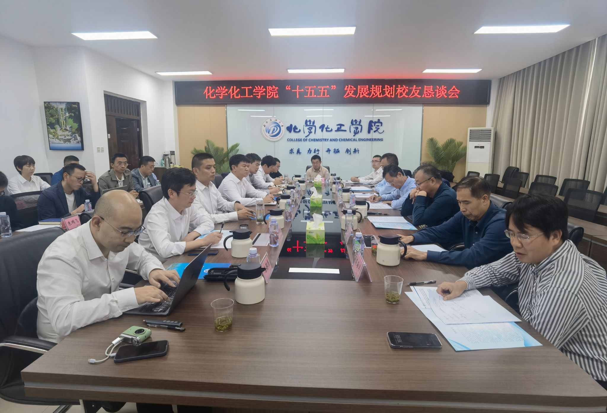 為進一步做好學院“十五五”事業(yè)發(fā)展規(guī)劃編制工作,提高規(guī)劃編制的前瞻性、科學性和民主性,全面提升人才培養(yǎng)質(zhì)量,10月18日,在學校67周年校慶前夕,化工院召開“十五五”發(fā)展規(guī)劃校友懇談會。 會議邀請部分來自科研院所、高等學校和行業(yè)企業(yè)的校友代表返校座談,為學院發(fā)展建言獻策。學院全體班子成員、各教研室負責人、實驗中心負責人及教師代表參加會議。 會上,校友代表結合自身經(jīng)歷與工作經(jīng)驗,圍繞服務區(qū)域經(jīng)濟社會發(fā)展需要、推進學院“十五五”高質(zhì)量內(nèi)涵式發(fā)展,從學科專業(yè)建設、科學研究與成果轉化、提升人才培養(yǎng)質(zhì)量等方面廣泛提出了寶貴建議。校友們提到,希望學院發(fā)展能緊密對接國家能源安全及發(fā)展新質(zhì)生產(chǎn)力等重大戰(zhàn)略需求,進一步優(yōu)化學科方向與科研布局,與企業(yè)、行業(yè)緊密協(xié)作,共同設計課程體系、創(chuàng)新實踐教學模式、完善人才培養(yǎng)機制。 院黨委書記蒲冠州代表學院對校友們返校表示熱烈歡迎,希望全體校友能一如既往關心支持母院改革發(fā)展,積極參與學院教育教學和人才培養(yǎng)過程,攜手共育德智體美勞全面發(fā)展的時代新人。 學院黨委副書記、院長段明從學科專業(yè)、平臺建設、師資隊伍、科學研究、學生培養(yǎng)等方面匯報了“十四五”期間學院辦學成效,并就未來五年的發(fā)展方向與目標規(guī)劃作了簡要介紹。 教師代表魯紅升、王靜懿、唐鋆磊、張輝、陳永東分別匯報了團隊(個人)研究工作情況。