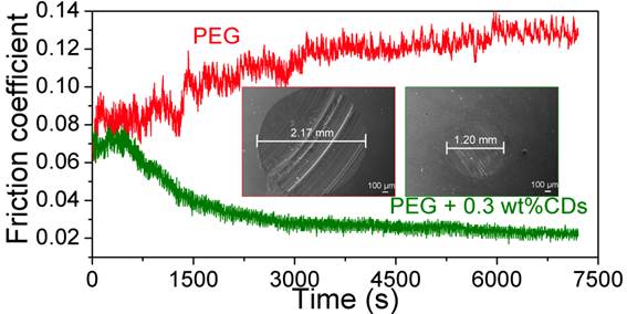 我院青年教師王寶剛博士納米潤滑添加劑的研究取得重要進(jìn)展 近日,化學(xué)化工學(xué)院青年教師王寶剛博士在離子液修飾碳量子點基潤滑添加劑的研究中取得重要進(jìn)展。相關(guān)研究結(jié)果以“Ionicliquid capped carbon dots as the high-performance friction-reducing and antiwear additive of poly(ethylene glycol)”為題,在線發(fā)表于英國皇家化學(xué)會材料化學(xué)類頂級刊物《材料化學(xué)A》(JCR 1區(qū);Journal of Materials Chemistry A 2016, 4,7257-7265;IF = 8.262)。 高效環(huán)保潤滑添加劑是基礎(chǔ)潤滑油研究的前沿領(lǐng)域。納米碳材料基潤滑添加劑由于其獨特的自潤滑效應(yīng)和超高的化學(xué)穩(wěn)定性而受到人們廣泛關(guān)注。傳統(tǒng)納米碳材料(如富勒烯、碳納米管、石墨烯、洋蔥狀納米碳等)作為潤滑添加劑也存在某些特有的缺點。例如,碳納米管、石墨烯在某些維度上仍然屬于微米級材料,除富勒烯外所有其它納米碳材料尺寸分布很不均勻,存在摩擦副表面納米尺度微凸體間的嵌入穩(wěn)定性問題;富勒烯、碳納米管、石墨烯和洋蔥狀納米碳結(jié)構(gòu)表面惰性,難于化學(xué)修飾,因而與基礎(chǔ)油的配伍性較差。這些缺點大大限制了它們的潤滑性能與應(yīng)用前景。 熒光碳量子點是碳納米材料的新成員,由于其尺寸小而均勻、合成與表面功能化可一步完成,有望完美解決上述問題,具有成為高效潤滑添加劑的潛質(zhì)。基于此,該工作采用熱解法合成了離子液體修飾的碳量子點,該碳量子點尺寸小(1.73 nm)而均勻,在水相中通過陰離子調(diào)控可使其在合成基礎(chǔ)油聚乙二醇中獲得極好的分散穩(wěn)定性,進(jìn)而考察了其作為潤滑添加劑的摩擦學(xué)性能。結(jié)果表明,添加0.3 wt%的碳量子點,可使PEG的摩擦系數(shù)和磨斑尺寸分別降低70%和45%。研究認(rèn)為,在機(jī)械剪切摩擦過程中,碳量子點表面離子液體基團(tuán)的薄膜潤滑與碳核本身的納米潤滑(如滾動效應(yīng)和填充效應(yīng))可實現(xiàn)協(xié)同潤滑效應(yīng),使得離子液修飾的碳量子點表現(xiàn)出卓越的減摩抗磨性能。 該研究工作得到了國家自然科學(xué)基金項目、中國博士后基金面上項目和油田化學(xué)省重點實驗室開放課題的支持。