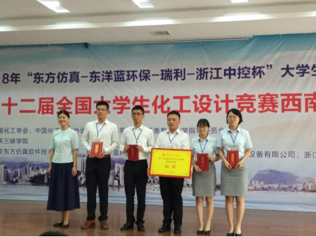 | 我院學生團隊獲“第十二屆全國大學生化工設計競賽”西南賽區銅獎2018-08-06  作者:  編輯:陳剛  審核:  瀏覽:[]  第十二屆全國大學生化工設計競賽西南賽區決賽于8月1日-8月5日在重慶三峽學院舉行。經過作品評審、現場答辯等環節,我校化工院參賽團隊“北極星”隊榮獲西南賽區決賽銅獎,成功晉級全國總決賽。 全國化工設計競賽由中國化工學會、中國化工教育協會、教育部高等學校化工類專業教學指導委員會聯合舉辦,競賽分為華東、華南、華北、華中、西北、西南和東北七個賽區,每個賽區通過初賽和決賽選拔優秀隊伍參加全國總決賽。本次西南賽區決賽由重慶三峽學院承辦,決賽共有四川、云南、貴州、重慶3省1市26所高校60支隊伍參加。我校今年有9支隊伍報名參賽,在化工院劉瑾、戴一陽兩位老師的精心指導下,經過6個多月的項目設計,通過初賽評比,我校共有4支團隊(北極星、星火燎原、Mercury、New Globe)成功晉級西南賽區決賽。 本次大賽題目為:“在車用燃料油和燃料油添加劑需求量大幅減少的情況下,如何有效地利用石油和石油加工產物中的相關餾分資源。”針對這一題目,學生結合專業知識、認真查閱相關文獻、虛心請教專業教師,從原料選取、工藝選擇、塔器選型、節能減排、安全環保、經濟分析等方面進行思考和創新。我校學生的作品文檔和現場答辯得到了評委老師的高度肯定,最終獲得總分第三名的好成績。